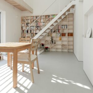 廊下は多くのご家庭で、何も置かないままデッドスペースにされがちですが、こちらの実例のようにコミック本を置くことで、その他の生活スペースに余裕を持たせることが可能になります。
