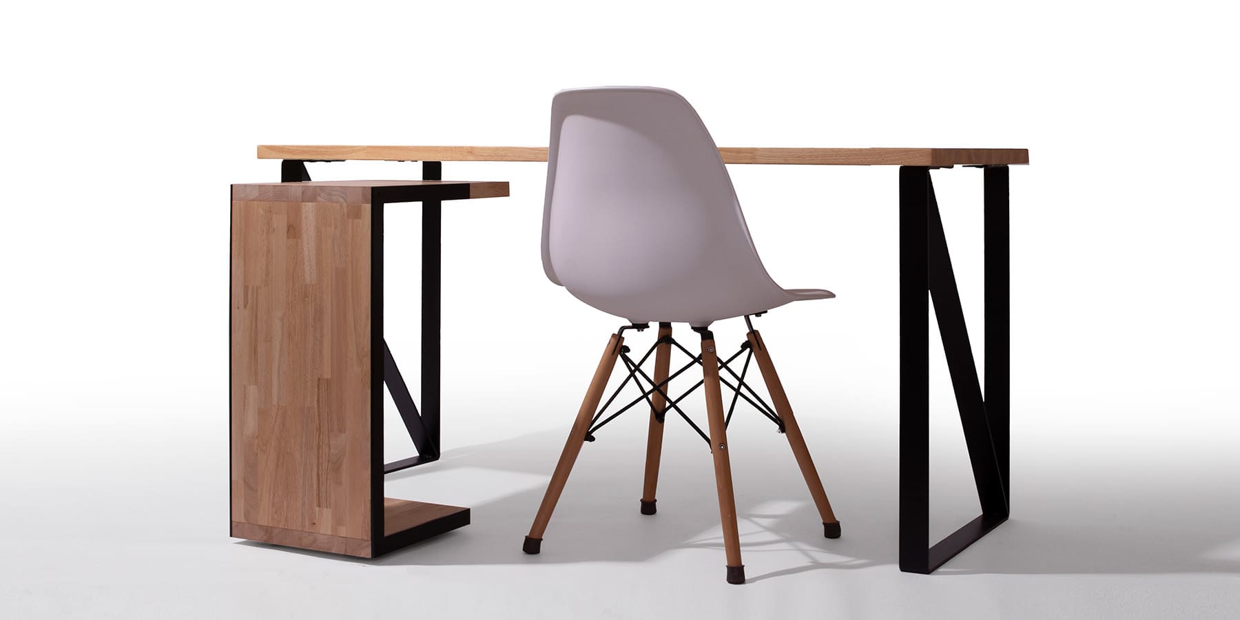 ラバーウッド集成材の天板は、手触りがなめらかで見た目も美しくなります。そして、4本の脚には幅50mm・厚さ1.6mmのスチールプレートを使用し、内部にブレースを配置して剛性を高めています。