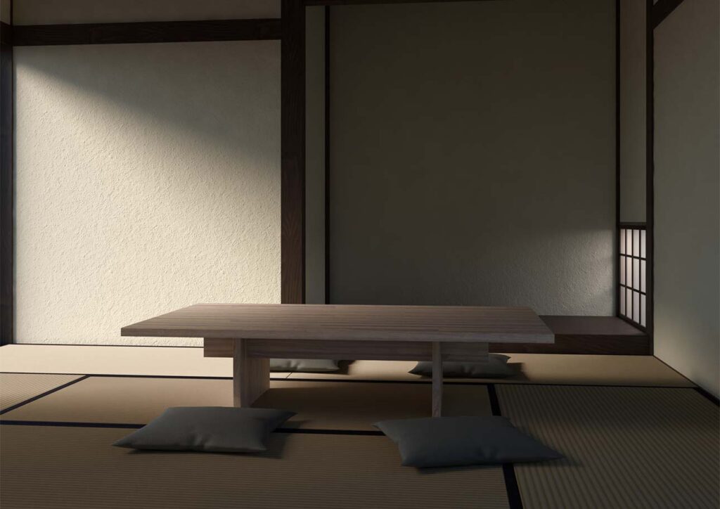 椅子がいらないため、座る人数や体格を選ばないのが特徴。座卓というと和室に置くイメージがあるかもしれませんが、最近は洋室でも和室でも使えるシンプルなデザインが主流です。