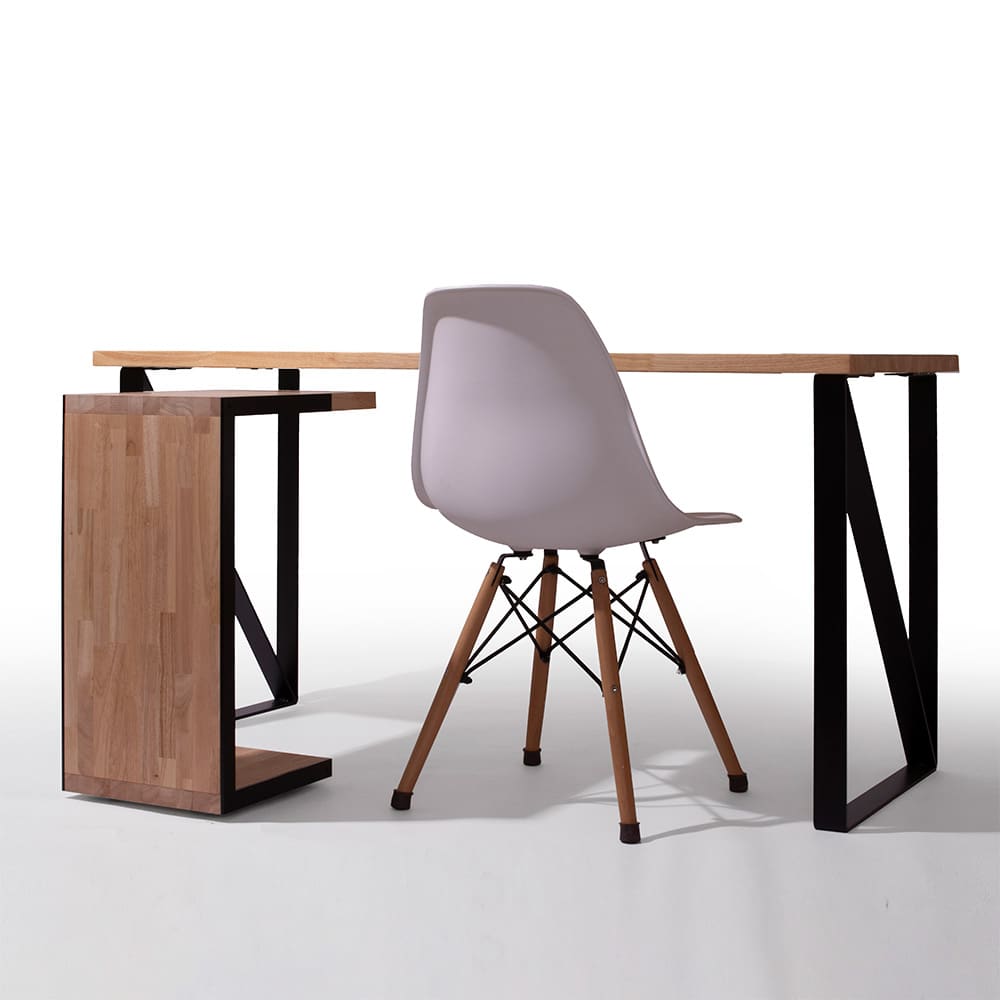 ミニマルなデザインながら、一時的にデスクを拡張できるサイドテーブル、キャスター付きのキャビネットなどのオプションがあり、必要に応じて組み合わせることができます。